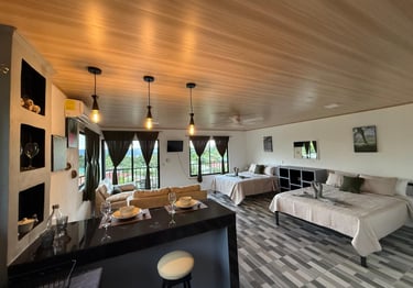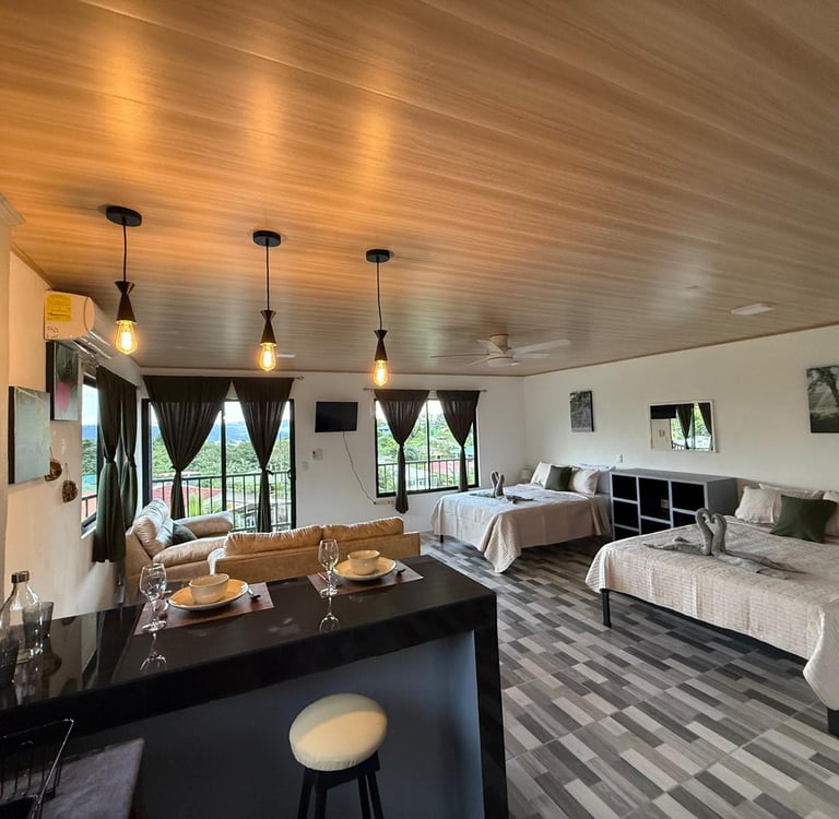 Enjoy a comfortable and relaxing stay in our modern, fully equipped apartments with stunning views and a strategic location near the most beautiful attractions in the Arenal area.